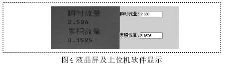 該程序主要用于實時更新流量信息,微處理器與上位機通過RS232接口以modbus協(xié)議進行通信。*后,該設計液晶屏上所顯示的流量信息與上位機軟件所顯示的數(shù)據(jù)如圖4所示。